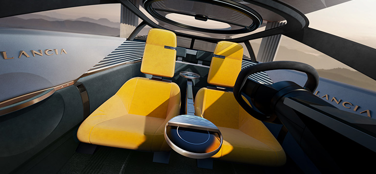 Ogni dettaglio di Lancia Pu+RA HPE celebra la bellezza di classici senza tempo. Il colore Progressive Green rende omaggio alla Lancia Flaminia Azzurro Vincennes, il frontale riprende la storica calandra di Lancia, il nuovo logo presenta gli storici simboli del marchio e i sedili sono ispirati alle poltrone Maralunga firmate da Vico Magistretti per Cassina.